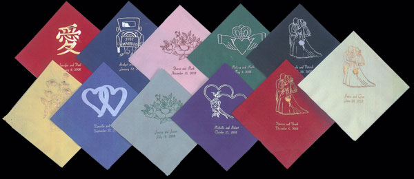 Personalized Ultra Soft Colored Napkin to enhance your wedding ensemble. Coordinate with any matching design. Napkins may be imprinted in shiny or flat foil colors. Size: 4 3/4" x 4 3/4" for Beverage and 6 1/2" x 6 1/2" for Luncheon. Shown with Gold Foil, Lettering Style No. 19 only, and your choice of design. Shiny Foil Colors: Gold, Silver, Claret, Sage, Purple, Periwinkle and Forest Green. Flat Foil Colors: Rose, Burgundy, Navy and Black